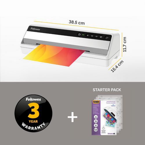 Wordt geleverd met een starterskit met 10 lamineerhoezen en een reinigingsvel inbegrepen.