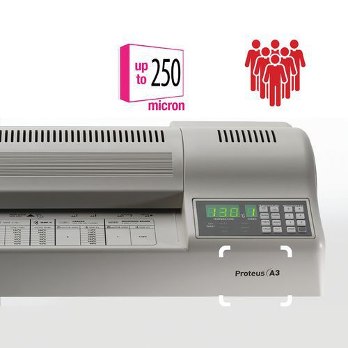 | Productnaam | Lamineermachine Proteus, Max. documentbreedte: 0.5 mm, Documentformaat: 297 x 420 mm (A3) |