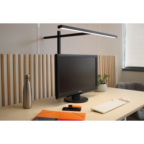 De architectuurlamp met dubbele arm ELITE Lumino combineert een elegant ontwerp met geavanceerde functies: deze biedt verlichting die instelbaar en niet verblindend is dankzij de draaiarm en asymmetrisch licht. De lamp is compact en intuïtief, en biedt een optimaal rendement van de werkruimte, waarbij ook lichttherapie wordt toegepast met bewezen positieve effecten op humeur, energie en slaap. Variatie in de kleurtemperatuur: pas uw verlichting aan uw wensen aan, of u nu wilt ontspannen, lezen of werken. Design: dankzij de vederlichte uitstraling en het uniforme licht geeft ELITE Lumino uw ruimte een elegant tintje. Handig: met deze lamp op een klem kunt u ruimte besparen op uw bureau en deze eenvoudig achter uw computer plaatsen. Materiaal: aluminium kop en arm.