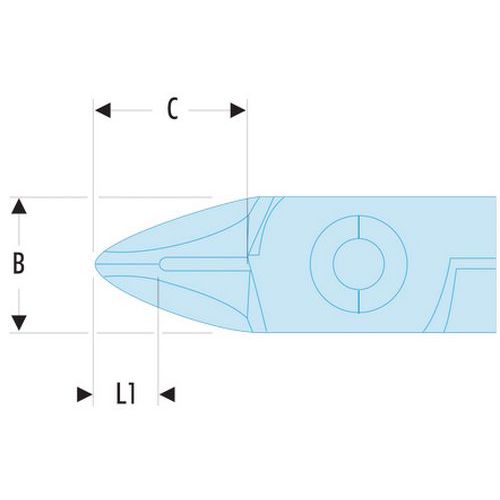 | Technische gegevens | B [mm]: 10,5, C [mm]: 13, E [mm]: 7, L [m]: 110, L [mm]: 110, L1 [mm]: 5,5, Snijvlak: i, Cu - Ni Ø [mm]: 0,1 - 1,2 |