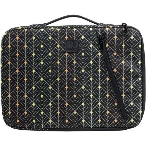 Klein vak aan de voorkant en ritssluiting aan twee zijden om te voorkomen dat de computer valt door de hoes te snel te openen.