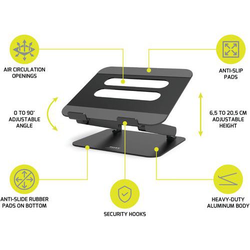 | Productnaam | Verstelbare laptopstandaard, Max. hoogte: 20.5 cm, Kleur: Zwart, Model: Aluminium verstelbare steun |