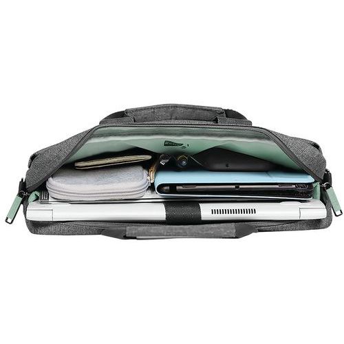 Laptoptas, compact en ultralicht. De structuur is volledig gevoerd voor een optimale bescherming. Het binnenvak voor de laptop is gevoerd, met veiligheidssjorband. Groot vak voor documenten, opbergvak voor pennen en accessoires. Verstelbare en afneembare gevoerde schouderriem, 2 handgrepen op de bovenkant. Grote voorzak met rits voor snelle toegang tot benodigdheden en accessoires. Gemaakt van stof van hoge kwaliteit, met mooi afgewerkte metalen gespen, ultrastevig.