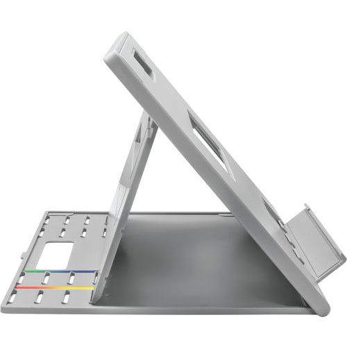 In hoogte verstelbaar, zodat de laptop tot wel 180 mm kan worden verhoogd voor een optimale oogpositie.