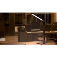 Veelzijdige led-lamp voorzien van schakelaar met touchfunctie met 5 niveaus en geheugenfunctie voor gepersonaliseerde verlichting. Instelbaar blauw nachtlampje voor rustige verlichting zonder verblinding. Drie kleurtemperaturen, van warm wit tot daglicht. Geïntegreerde USB-poort (5V 2.1A) voor eenvoudig opladen van mobiele apparaten. Opvouwbaar design en verstelbare kop voor optimale positionering en ruimtebesparing op het bureau.