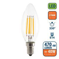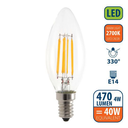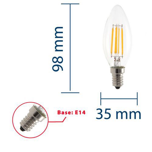 LED-filamentlamp kaarsvorm C35 4 W fitting E14, Lichtstroom: 470 lm, Type fitting: E14