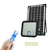 Energiebesparing: de lamp op zonne-energie met bewegingssensor wordt opgeladen door een paneel op zonne-energie dat het zonlicht opvangt.