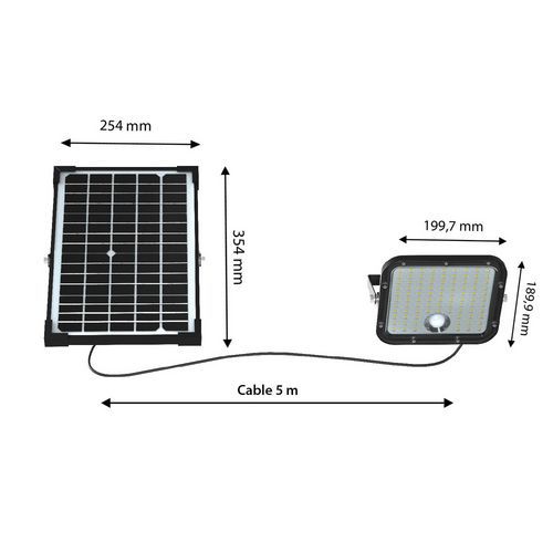 Het zonnepaneel en de schijnwerper zijn gescheiden en met elkaar verbonden via een kabel van 5 meter lang. Zo kan het paneel worden geplaatst waar het zo veel mogelijk zon krijgt, en de schijnwerper onder het dak, aan de muur, binnen, waar u maar wilt. Eenvoudig te installeren: de spot hoeft alleen aan de muur te worden bevestigd (verstelbare houder) en met de waterdichte stekker aan het zonnepaneel te worden bevestigd. De installatie is voltooid.