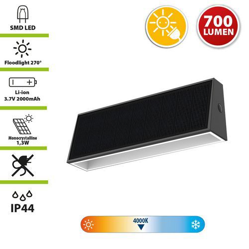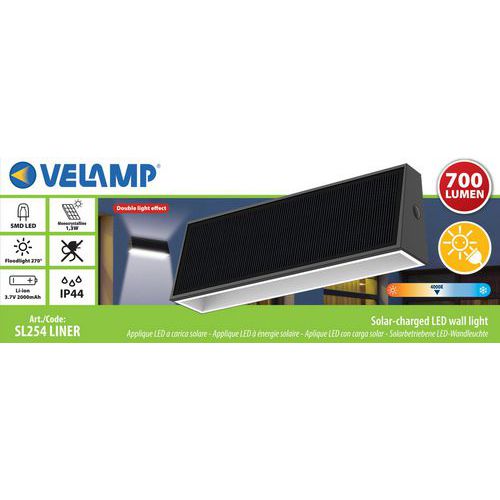| Productnaam | Wandlamp led op zonne-energie met dubbele lichtbundel Liner, Lichtstroom: 700 lm |