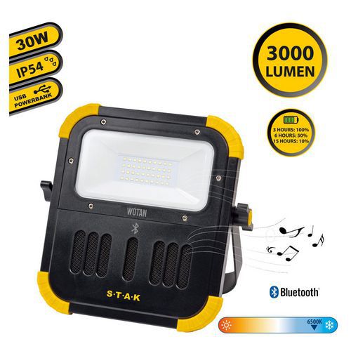 | Productnaam | Led-werklamp met bluetooth-speakers Wotan, Lichtstroom: 3000 lm, Vermogen: 30 W, Beschermingsgraad IP: IP 54 |