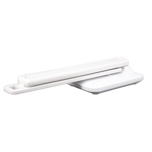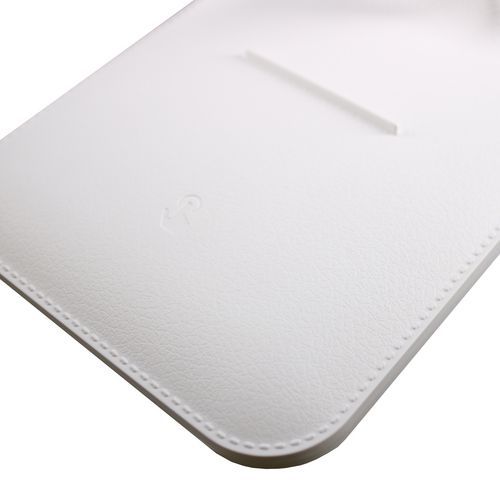 - Hij heeft ook een houder waarin een smartphone kan worden geplaatst, liggend of staand.