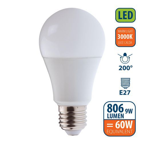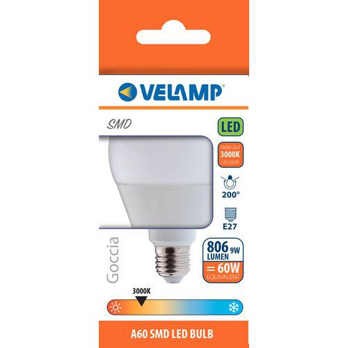 Ledlamp SMD standaard A60 9 W fitting E27 - VELAMP