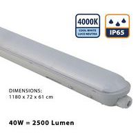 Plafondlamp met beschermingsklasse IP65 en geïntegreerde zeer heldere led van 21 W, 2500 lm. Voorzien van een pakkingbus bij in- en uitgang, voor montage in serie. Uitstekend voor vochtige omgevingen zoals garages, kelders en wasruimtes. Geschikt voor buitengebieden die worden blootgesteld aan directe waterstralen en binnendringing van fijne stofdeeltjes. Constructie en diffuser van polycarbonaat.