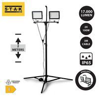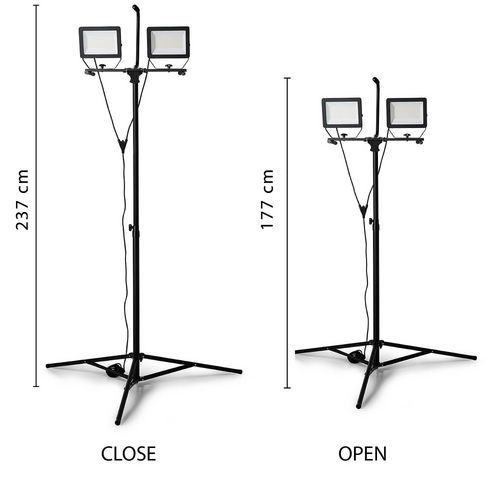- Ledschijnwerper op statief 2 x 100 W Minos, met zeer lichte, maar ook sterke en robuuste aluminium constructie.