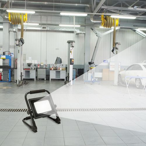 Krachtig: de energiezuinige ledwerklamp van 50 W/4000 lumen verlicht de bouwplaats met een natuurlijk wit licht (4000 K) en zorgt voor optimale werkomstandigheden, zelfs buiten (IP65).