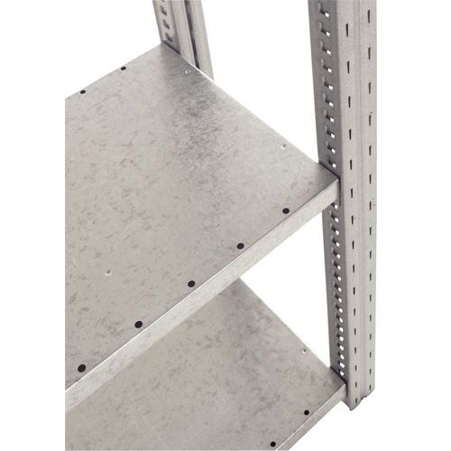Gegalvaniseerd legbord te gebruiken in combinatie met de stelling Ad'vance. Perforaties in de lengterichting van de 2 zijden voor de plaatsing van scheidingen. Om snel een extra etage te maken voor nog meer opslagruimte. Inclusief verstevigingsstang. Voor opslag, met eenvoudig te reinigen oppervlak.