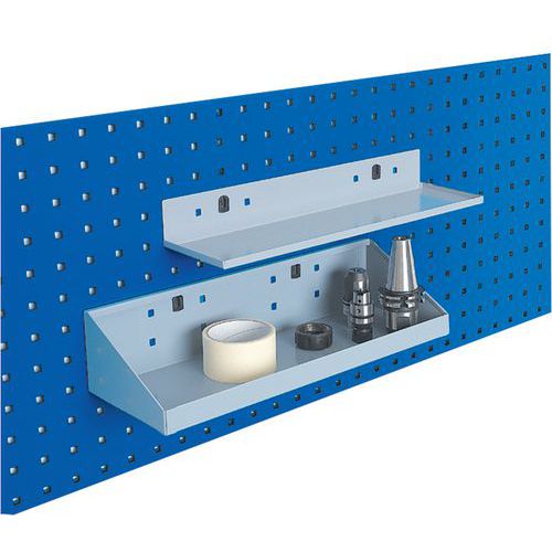 Handige legborden voor uw werkplaatsonderdelen. Robuuste uitvoering van 6 mm dik materiaal. Zet de houder in een handomdraai vast met de kunststof borgclips.