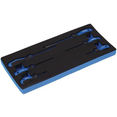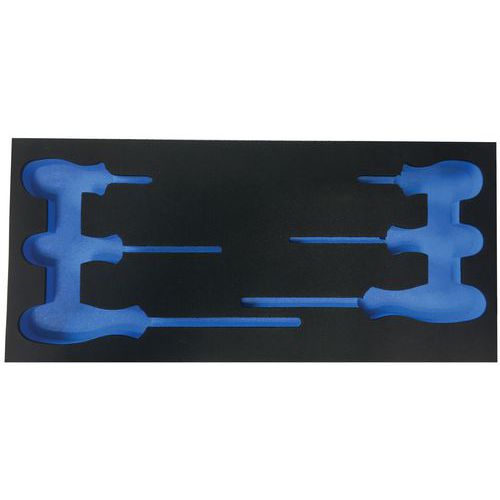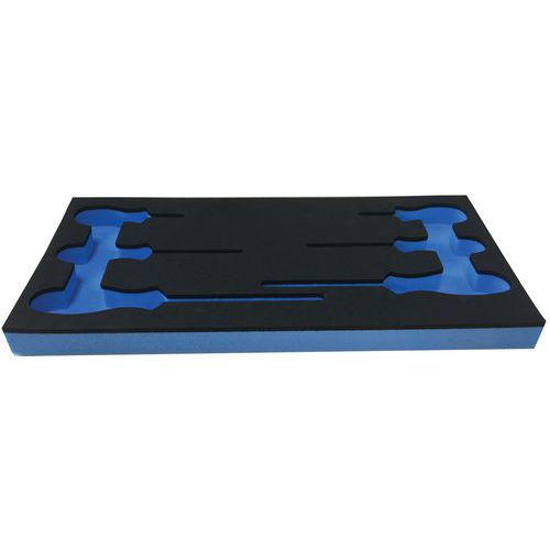 Lege 1/3-module voor 4 schroevendraaiers + 2 bolvormige schroevendraaiers - Manutan Expert Lege 1/3-foammodule voor 4 schroevendraaiers en 2 bolvormige schroevendraaiers. Ideaal voor de uitrusting van een gereedschapswagen.