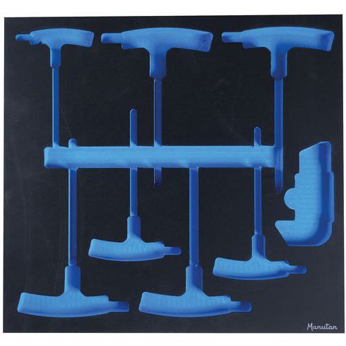 | Productnaam | Lege 2/3 module voor 7 binnenzeskantsleutels met T-greep en 9 korte sleutels, Aantal stuks: 1, Gewicht: 50 g |