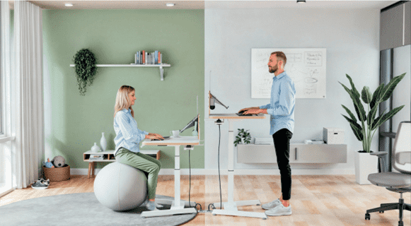 Voldoende bewegen tijdens je werkdag is belangrijk om gezondheidsklachten op de lange termijn te voorkomen. De Leitz Ergo Compacte Werkplek maakt het gemakkelijk om zittend en staand werken af te wisselen en in beweging te blijven. Met het elektrische zit-sta bureau van Leitz Ergo activeer je eenvoudig een sta-op herinnering, zodat je op tijd van houding wisselt. Wissel bijvoorbeeld een uur zittend werken op de Leitz Ergo Actieve zitbal af met een staande werkhouding op de Leitz Ergo Actieve zit-sta kruk. Ook wanneer je op een bureaustoel zit, blijf je in beweging door een balanskussen te gebruiken. Dit stimuleert microbewegingen en versterkt je rugspieren.