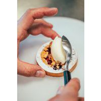 - Lepel Quenelle speciaal ontworpen om perfecte quenelles te vormen, met puntige uiteinden.