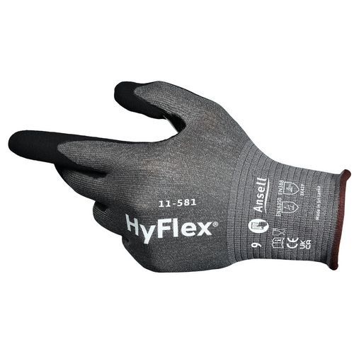 Extra comfort: HyFlex® 11-581 industriële handschoenen zijn zeer licht en bieden bescherming conform ANSI/ISEA 105-2024 CUT A6 en EN ISO F met 20% minder gewicht*, voor een hogere snijweerstand en betere vingergevoeligheid. Verhoogde bescherming: 6 keer hogere snijweerstand** dankzij een nieuwe generatie enkel HPPE-garen ontwikkeld met INTERCEPT™ snijweerstandtechnologie voor een betrouwbare handbescherming. Uitstekende pasvorm: dankzij de FORTIX™-technologie en een versteviging tussen duim en wijsvinger bieden deze handschoenen optimale bescherming bij handelingen in schurende toepassingen. Meer gebruiksgemak: HyFlex® 11-581 veiligheidshandschoenen bieden gebruikers bovendien de mogelijkheid om meerdere apparaten met touchscreen te bedienen zonder de handschoenen uit te trekken. HYFLEX voldoet aan de meest veeleisende veiligheids- en kwaliteitsnormen en is een referentie op het gebied van veiligheid in veel geavanceerde industrieën, zoals de ruimtevaart of Formule 1.