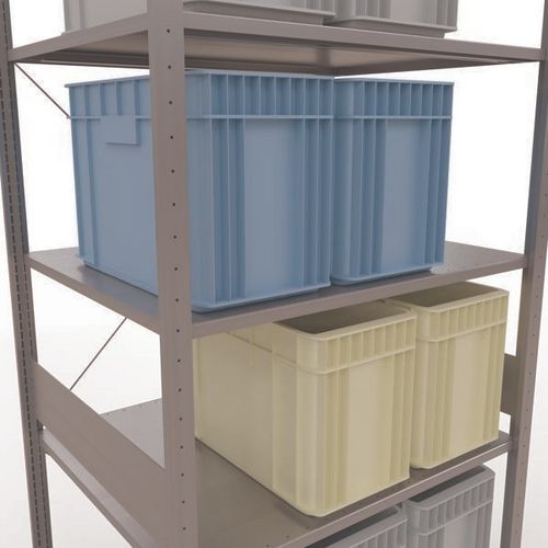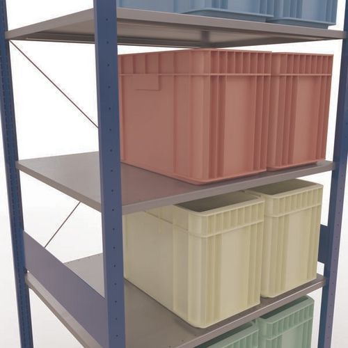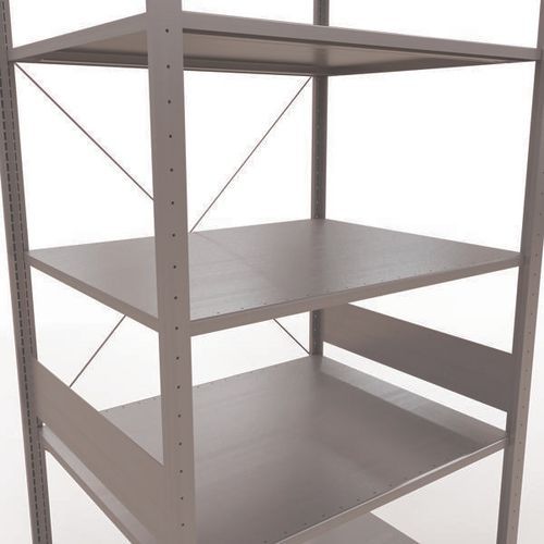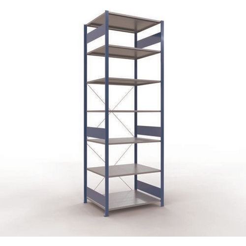 Robuuste magazijnstelling, gegalvaniseerde afwerking, zeer bestand tegen vochtige omgevingen. Dichte legborden van plaatstaal die producten van verschillende afmetingen kunnen dragen. Industriële stelling, eenvoudig en snel te monteren door in elkaar te schuiven, zonder speciaal gereedschap. Eenvoudig uit te breiden met één of meer aanbouwstelling(en). Afstand tussen de perforaties: 25 mm. Hoogte van de eerste perforatie: 50 mm. Hoogte van de eerste perforatie: 22,5 mm.