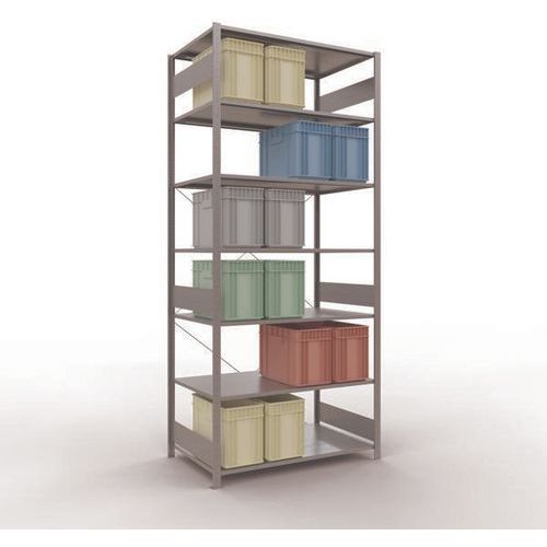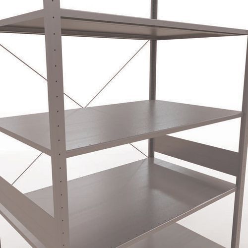 Robuuste magazijnstelling, gegalvaniseerde afwerking, zeer bestand tegen vochtige omgevingen. Dichte legborden van plaatstaal die producten van verschillende afmetingen kunnen dragen. Industriële stelling, eenvoudig en snel te monteren door in elkaar te schuiven, zonder speciaal gereedschap. Eenvoudig uit te breiden met één of meer aanbouwstelling(en). Afstand tussen de perforaties: 25 mm. Hoogte van de eerste perforatie: 50 mm. Hoogte van de eerste perforatie: 22,5 mm.