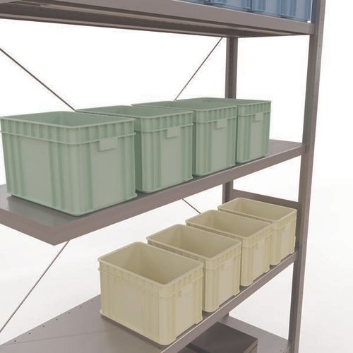 Robuuste magazijnstelling, gegalvaniseerde afwerking, zeer bestand tegen vochtige omgevingen. Dichte legborden van plaatstaal die producten van verschillende afmetingen kunnen dragen. Industriële stelling, eenvoudig en snel te monteren door in elkaar te schuiven, zonder speciaal gereedschap. Eenvoudig uit te breiden met één of meer aanbouwstelling(en). Afstand tussen de perforaties: 25 mm. Hoogte van de eerste perforatie: 50 mm. Hoogte van de eerste perforatie: 22,5 mm.