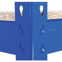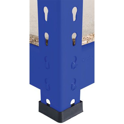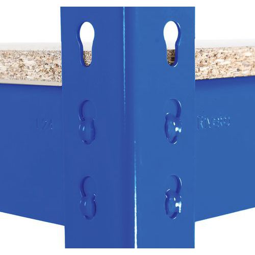 Industriële stelling voor het opslaan van lichte tot middelzware lasten van 250 kg/niveau. Leverbaar in verschillende afmetingen en 3 afwerkingen (epoxylak of verzinkt staal). Robuust: veilige bevestiging van de liggers door middel van dubbele klinknagels, 2 verstevigingen per niveau onder de legborden. Stelling aanpasbaar d.m.v. montage: 1 hoge juk of 2 jukken naast elkaar. Kleur RAL: blauw 5010, antraciet 7016. HDF-spaanplaat, zeer hoge dichtheid. Magazijnlegbord, zeer eenvoudig en zonder specifiek gereedschap te monteren.