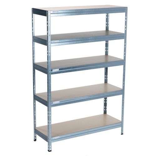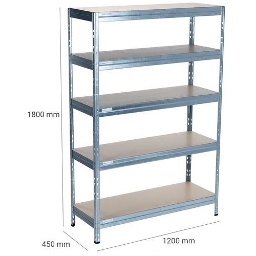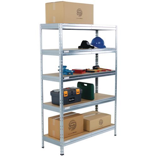 Industriële stelling voor het opslaan van lichte tot middelzware lasten van 250 kg/niveau. Leverbaar in verschillende afmetingen en 3 afwerkingen (epoxylak of verzinkt staal). Robuust: veilige bevestiging van de liggers door middel van dubbele klinknagels, 2 verstevigingen per niveau onder de legborden. Stelling aanpasbaar d.m.v. montage: 1 hoge juk of 2 jukken naast elkaar. Kleur RAL: blauw 5010, antraciet 7016. HDF-spaanplaat, zeer hoge dichtheid. Magazijnlegbord, zeer eenvoudig en zonder specifiek gereedschap te monteren.