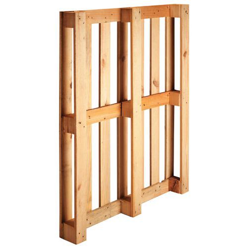 Industriële houten pallet voor eenmalig gebruik. Aan 4 zijden toegankelijk voor een steekwagen of een heftruck. Geschikt voor het transporteren en opslaan van zicht ladingen. Gemaakt in de EU Max. dynamisch draagvermogen (kg) : 500 Max. statisch draagvermogen (kg) : 1000