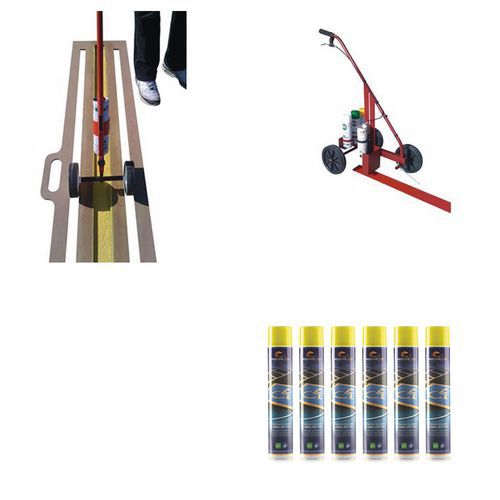 - Met deze complete set kunt u gemakkelijk uw markeringen op de grond maken.