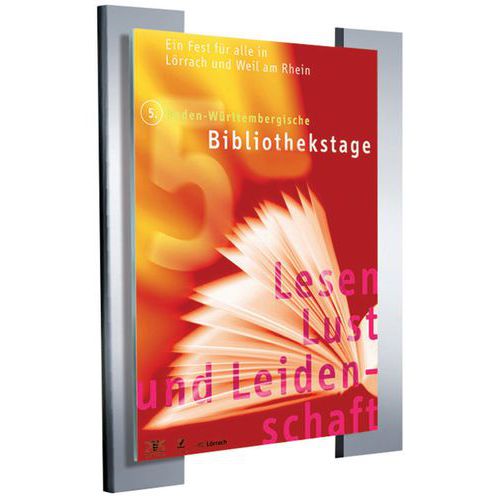 - Posterhouder is voorzien van een stijlvol frame, in de vorm van 2 aluminium panelen.