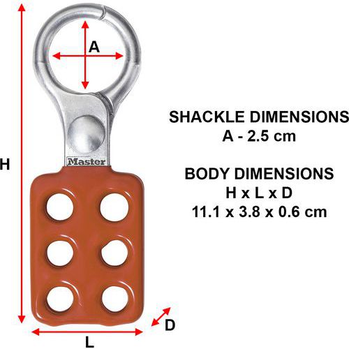 Lockouthaak nr. 416, Beugel Ø: 6 mm, Breedte: 38 mm, Lengte: 111 mm, Kleur: Rood, Aantal stuks: 12
