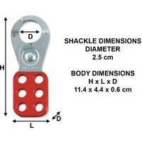 Lockouthaak nr. 420, Beugel Ø: 7 mm, Breedte: 44 mm, Lengte: 114 mm, Kleur: Rood, Dikte: 6 mm