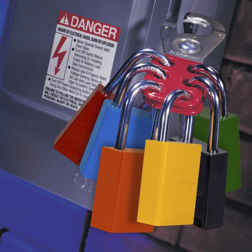 - Maakt het mogelijk om tot 6 werknemers tegelijkertijd te blokkeren op één lockoutpunt.