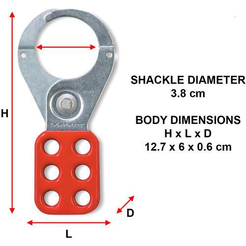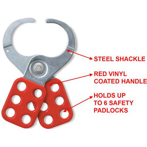 De stalen lockouthaak nr. 421 van Master Lock heeft een inwendige bekdiameter van 38 mm en kan tot zes hangsloten bevatten.