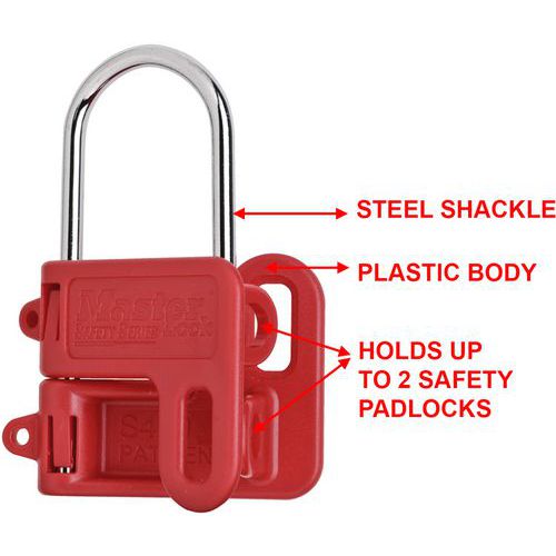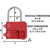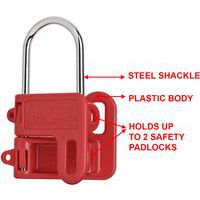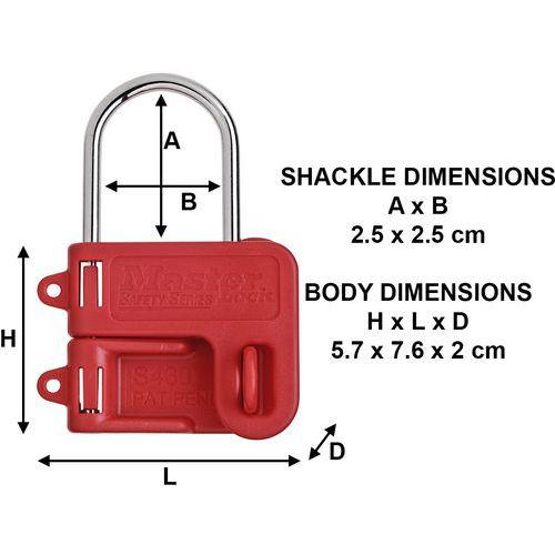 Lockouthaak nr. 430, Beugel Ø: 7 mm, Kleur: Rood, Dikte: 4 mm, Materiaal: Staal, Aantal sleutels: 2