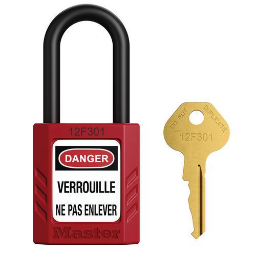 Veiligheidshangslot, Kleur: Rood, Breedte: 4.5 cm, Hoogte: 38 mm, Dikte: 15 mm, Beugel Ø: 6 mm