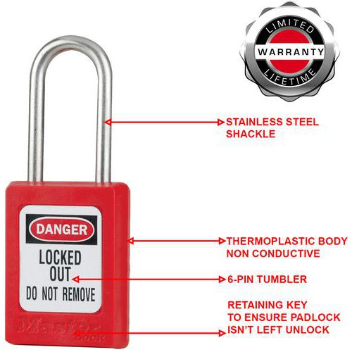 Lockouthangslot met fijne beugel S31RED, Kleur: Rood, Beugel Ø: 4.76 mm