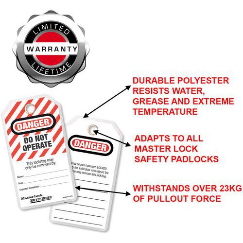 Lockoutlabel, Model: Engels, Beugel Ø: 11 mm, Breedte opening: 146 mm, Lengte: 80 mm, Hoogte opening: 79 mm