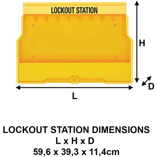 Lockoutstation, Breedte opening: 596 mm, Kleur: Geel, Aantal stuks: 1, Materiaal: Polycarbonaat