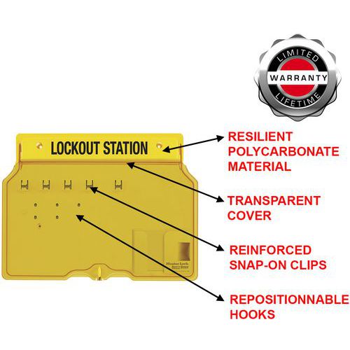 | Productnaam | Lockoutstation nr. 1482, Lengte: 406 mm, Kleur: Geel, Gewicht: 1.695 g, Materiaal: Acryl, Aantal sleutels: 4 |