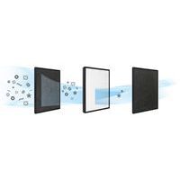 - Bestaat uit een fijnmazig voorfilter, HEPA-filter en een filter met een groot aantal actieve koolstofdeeltjes.