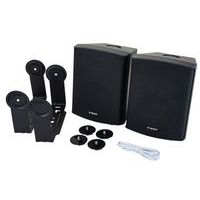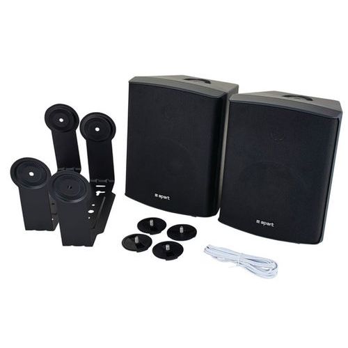 Set bestaande uit 2 compacte speakers, één actief (2 x 30 W versterking) en één passief verbonden door middel van een eenvoudige luidsprekerkabel. Luidsprekers geleverd met een verstelbare wandmontagebeugel, een netsnoer van 3 m en een zwarte luidsprekerkabel van 5 m om de actieve luidspreker op de passieve luidspreker aan te sluiten. 2 modellen in 2 kleuren (zwart of wit) met of zonder IR-afstandsbediening