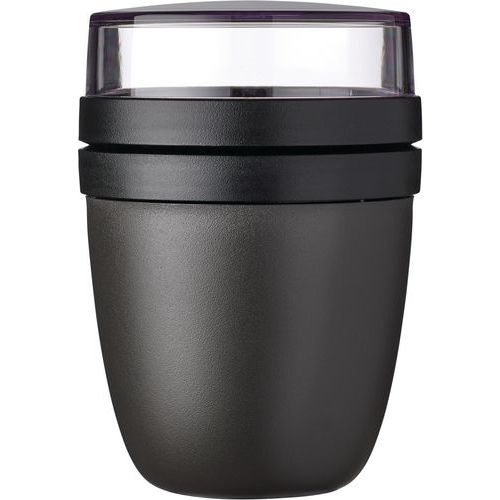 Twee ruime vakken (500 + 200 ml). Lekt niet in uw tas. Deksels zijn verwisselbaar met andere potten en bekers. Kan in de diepvries, magnetron en vaatwasser. Bijpassende opvouwbare lepel beschikbaar. Gemaakt in Nederland.