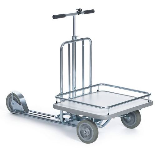 Magazijnstep met platform en precisiekogellagernaaf van Zweedse makelij die gemakkelijk rolt, stabiel stuurt en een compacte draaicirkel heeft.