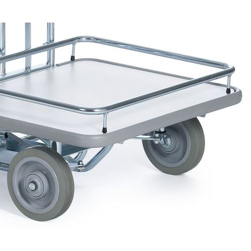 Het platform (dat tot 50 kg kan dragen) bestaat uit een duurzame legbord die gelamineerd is met lichtgrijze verf, een rubberen strip rondom het platform en afneembare rand voor eenvoudig gebruik - uitstekend geschikt voor gereedschapskisten of dozen.
