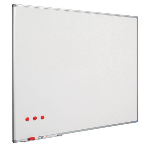 Geëmailleerd whiteboard, vloeiend te beschrijven, droog wisbaar zonder opbouw van restanten na verloop van tijd. Aluminium frame met afgeronde hoeken voor een elegante klassieke stijl. Glad magnetisch oppervlak voor het met magneten bevestigen van uw documenten. Met houder voor markeerstiften en accessoires. Krasbestendig.